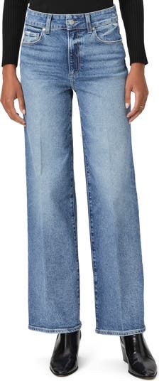 A loose, full-length column silhouette ensures a laid-back look in high-rise wide-leg jeans made from vintage-inspired low-stretch denim.