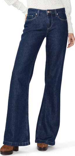 A low-rise waist brings an on-trend detail to these extralong, trouser-inspired jeans that fit slim through the thighs and wide through the legs.