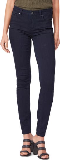 Denim gets a sophisticated update in these remarkably soft and stretchy jeans cut in an ultra-skinny silhouette and finished in a dark rinse.