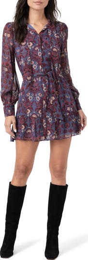 Cut from luxe silk, this elevated mini is designed with puff shoulders and drapey ties at the neck and waist.