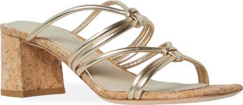 Metallic leather and knotted straps bring effortless contemporary sophistication to this breezy slide sandal that sits on a low block heel.