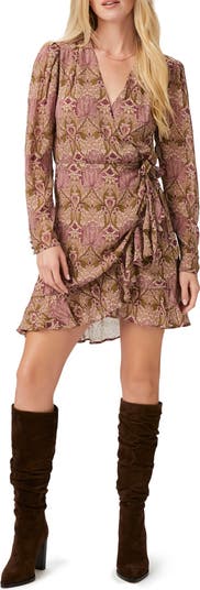 Soft ruffles further the romantic feel of a crinkled silk-georgette dress featuring a hand-painted print created by the interior design mavens at Morris & Co.