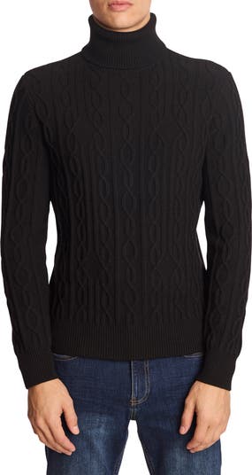 Classic cable knitting sweetens the style of a soft, lightweight sweater perfect for building cold-weather outfits.