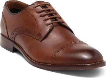 Add a polished effect to your footwear collection with this cap-toe derby crafted from burnished leather with a cushioned OrthoLite® footbed.