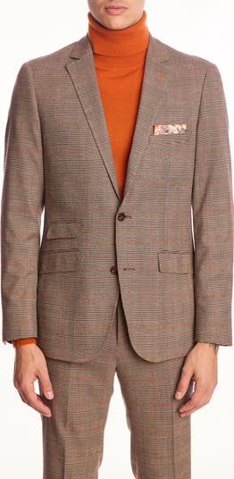 Dress to impress in a slim-fitting blazer topped with notched lapels and cut from stretch-kissed fibers in a glen plaid design.