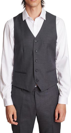 Effortlessly transition from board meetings to soirées in this dapper modern-fit vest featuring a five-button closure and a patterned back with an adjustable half belt.