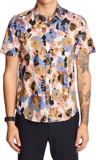 Abstract flowers brighten this short-sleeve button-up shirt cut from breathable cotton for maximum comfort.