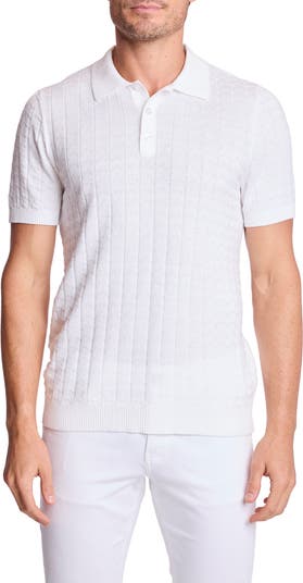 A zigzag pattern brings textural edge to this knit polo keeping you comfortable at the office or out on the town.