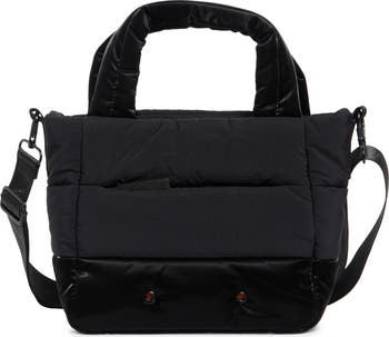 A puffy silhouette enhances the comfort of this handy tote bag outfitted with signature orange lining and pockets, inside and out.