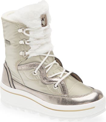 A plush faux-fur lining keeps your foot warm and toasty in this cold-weather boot designed with a waterproof upper and built on a sawtooth sole for enhanced traction on icy terrain.