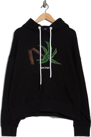 A bold touch of designer charm elevates this stretch cotton hoodie that showcases a broken palm tree design.