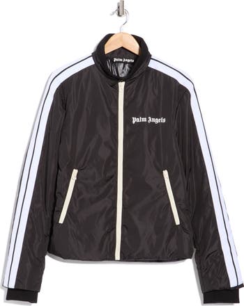 The label's iconic track jacket with contrast stripes racing down the sleeves and signature gothic-typeface logo takes inspiration from its bomber cousin and gets updated with a blade collar.