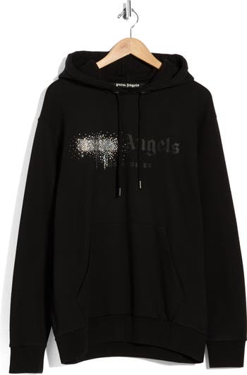 Half covering the logo graphic, an array of crystals inspired by spray-painted graffiti brings an edgy yet elevated finish to this cotton hoodie in a roomy fit.