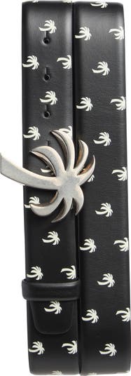 Swaying palms define the buckle and neatly pattern this Italian-made belt shaped from smooth leather to combine sophistication with everyday appeal.