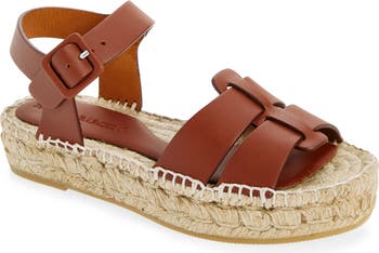 Interlocking vamp straps add modern dimension to an espadrille-inspired sandal lifted by a jute-wrapped platform sole.