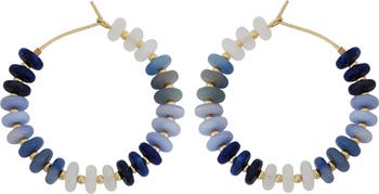 A mix of white and blue beads bring texture and color to your look with eye-catching hoop earrings finished with a goldtone plate.