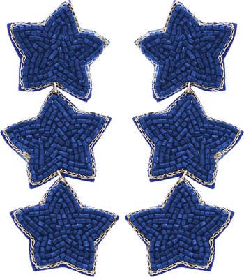 Swingy stars with intricately stitched seed beads bring bold color to statement drop earrings backed by soft felt.