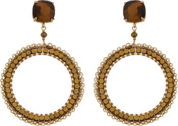 Brown Beaded Circle Drop Earrings