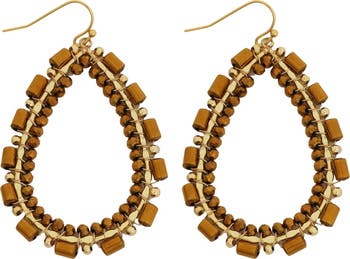 Brown Crystal Beaded Teardrop Earrings