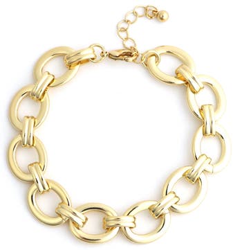 Perfect to layer or show off solo, this circle-chain bracelet is plated in warm 14-karat gold with a high-shine finish.