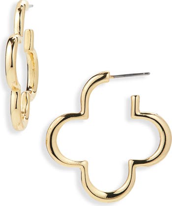 Bring instant shine to your day with these open-clover hoop earrings plated in warm 14-karat gold.
