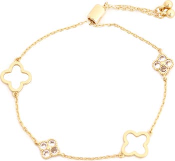 Sparkly crystal stations and glossy open clovers illuminate this elegant slider bracelet that brings instant shine to your stack.