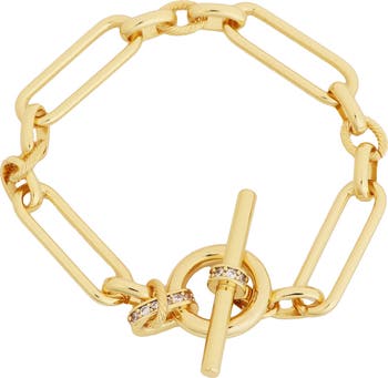 Textured and paper clip–links gleam from this elegant toggle bracelet highlighted by dainty crystals for added sparkle.
