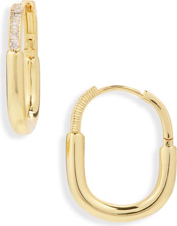 Bring instant shine to your looks with these polished oval hoop earrings accented by sparkly channel-set crystals.