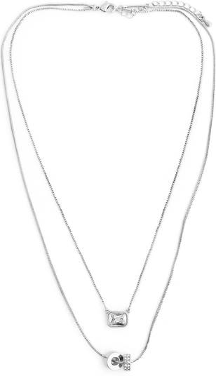 Brighten your neckline with these delicate layered chains both centered by geometric pendants adorned with shimmery bright-white crystals.
