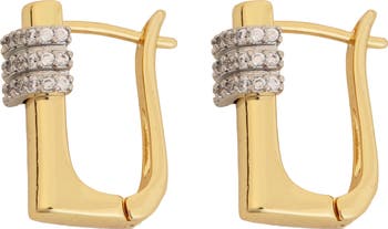 Give your look the sparkle it deserves with these stunning hoop earrings designed in a modern square shape and bedazzled with three rows of glimmering crystals.