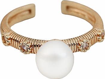 This adjustable ring features a cultured freshwater pearl face and a textured band for a timeless look.