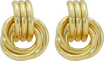 Twisted rings catch the light on these textural doorknocker earrings plated in polished 14-karat yellow gold.