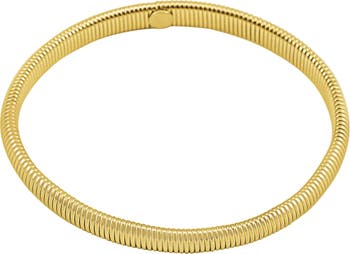 Bring instant shine to your stack with this coiled, stretchy bangle bracelet plated in gleaming 14-karat gold.