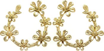 Blooming flowers add a dose of sweetness to hoop earrings finished in bright 14-karat-gold plating.