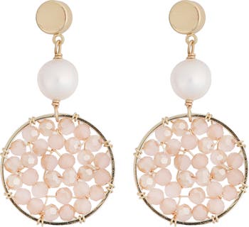 Lustrous freshwater pearls and faceted crystal beads catch the light on these stunning circle-drop earrings plated in warm 14-karat gold.