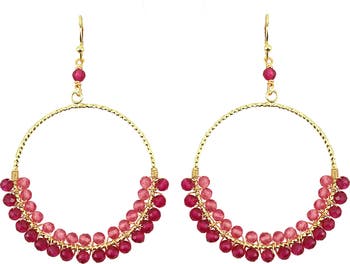 Pink and fuchsia beads sparkle from open-circle drop earrings that bring a pretty pop of color to any outfit.
