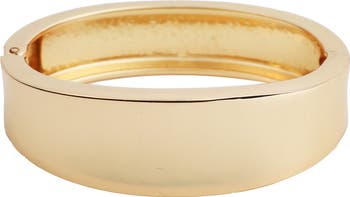 Show off fluid shine with this stackable hinged bangle bracelet plated in warm 14-karat gold.