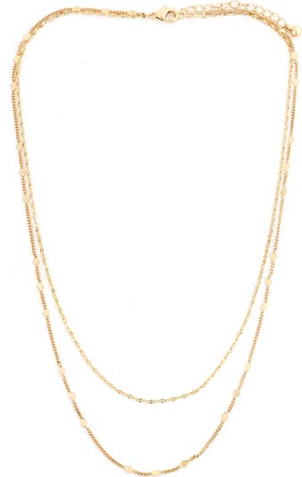 Flattened stations catch the light on this dainty double-chain necklace plated in warm 14-karat gold.