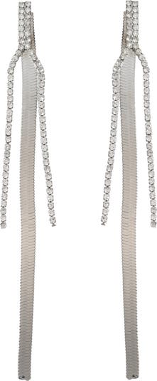 Add elegant dimension to your look with these front/back earrings featuring shimmery snake-chains and cubic zirconia stones.