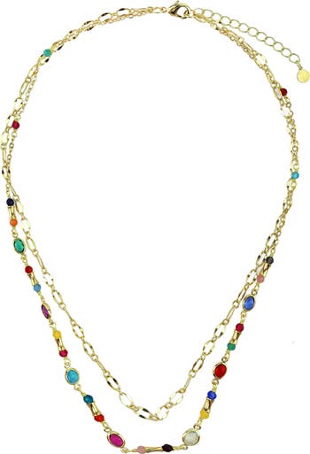 Colorful mixed-cut crystals and beads enrich this layered necklace plated in warm 14-karat gold for eye-catching shine.