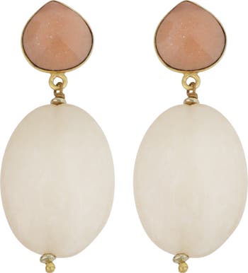 Show off boho-chic style with these pear-shaped and oval stone drop earrings finished in warm 14-karat gold.