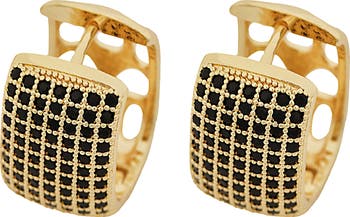 Show off sophisticated shine with these polished square huggie-hoop earrings illuminated by pavé black crystals.