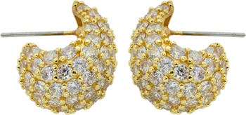 Pavé crystals illuminate these wedge hoop earrings plated in warm 14-karat gold for elegant shine.