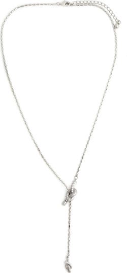 Perfect to layer or wear solo, this glossy ball-chain Y-necklace is punctuated by dainty knot charms illuminated by sparkly pavé crystals.