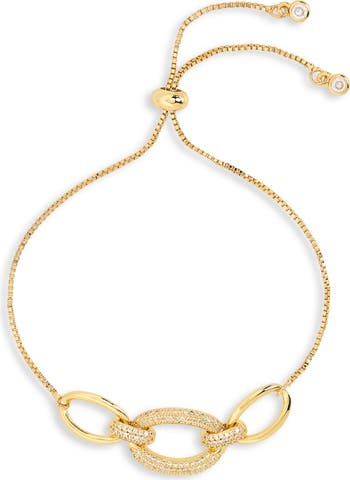 Pavé crystals bring just-right sparkle to this polished oval-link bracelet that secures with a sliding bead closure for the perfect fit.