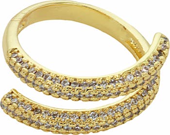 Sparkly pavé crystals illuminate this adjustable, wraparound-band ring plated in warm 14-karat gold for eye-catching shine.