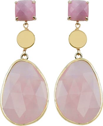 Faceted pink stones give a sweet pop of color to these drop earrings that are sure to charm against any attire.