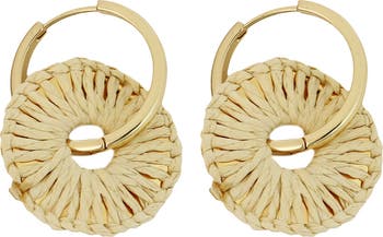 Warm 14-karat-gold plating and rattan wrapping define hoop earrings that combine timeless elegance with bohemian charm.