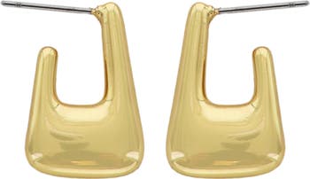 Bring instant shine to your looks with these rectangular hoop earrings plated in glossy 14-karat gold.