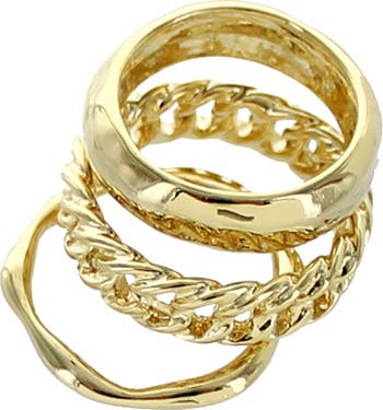 This set of three rings is fashioned with twisted and smooth 14-karat gold-plated rings, perfect for stacking or wearing solo.